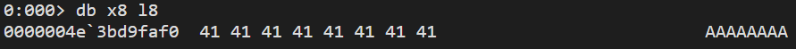 A lot to grasp but bear with me. Instruction at 0x7ff699ffab38 loads a pointer to 0x7ff69a0a9000 in the register x8 and immediately catches our attention. Let’s observe the contents of that memory location with da 0x7ff69a0a9000: